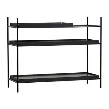 Tray hylle lav eik, 80 x 100 cm fra danske Woud er en åpen bokhylle med tre hylleplater, designet av Hanne Willmann Den lille hyllen har en estetisk symmetri med rette linjer og er designet for å passe for nettopp deg. Velg selv din favorittkombinasjon ved å plassere platene på en av de ulike nivåene i rammen. Hyllen har små hylleplater som gjør det mulig å få plass til høye gjenstander, som en vakker vase.