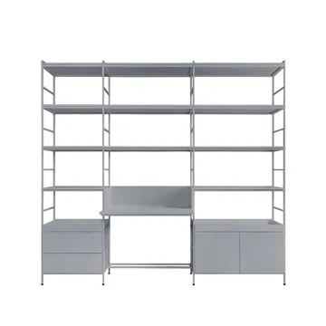 Molto høy hyllesystem, Grå, 3 seksjoner med arbeidsplate Zweed