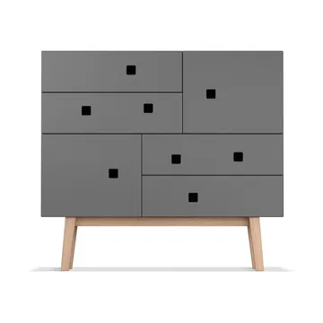 Peep B1 kommode fra Zweed, designet av Håkan Johansson, er et romslig og funksjonelt møbel. Kommoden er litt dypere og høyere enn sine søsken, noe som gir rikelig med plass i skuffer og skap. Den har asymmetrisk plasserte håndtak, som gir et visuelt innblikk i innholdet. Med dempende luker og skuffer, samt flere farge- og benstativvalg, tilbyr den både stil og praktiskhet til hjemmet ditt. Peep B1 finnes i flere modeller og farger.