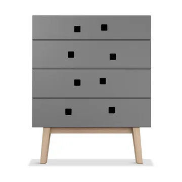 Peep B3 kommode fra Zweed er designet av Håkan Johansson og har fire skuffer som tilbyr rikelig med oppbevaringsplass. De asymmetriske håndtakene gir en unik visuell effekt samtidig som de demper skuffenes lukking for en stille og smidig opplevelse. Denne kommoden finnes i ulike modeller og farger for å passe forskjellige interiører.