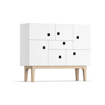 Peep C1 skap fra Zweed, designet av Håkan Johansson, har unikt plasserte håndtak for å gi et glimt av innholdet. Den innebygde dempingen gir myk lukking av dører og skuffer. Finnes tilgjengelig i ulike modeller og farger med varierende benstativer for å passe alle behov og rom.