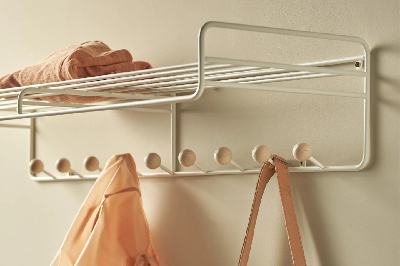 I gangen bør du ha møbler som hjelper deg å rydde vekk og organisere jakker, ytterklær og sko, og knagger kan være like praktiske som dekorative. Siden de kan festes på veggen, sparer de gulvplass, og det er derfor lett å plassere en praktisk skohylle under knaggrekkene. The Dots fra Muuto er en av våre mest populære knagger, og kommer i en rekke farger og størrelser. Disse kan monteres i ulike høyder og grupperinger, noe som gir et lekent og livlig uttrykk.