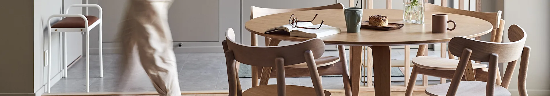 Afteroom fra Menu er en serie fine møbler for entreen og også hele hjemmet, designet i samarbeid med designduoen Afteroom. Serien består av knagger, stoler, lenestoler og benker, og er designet for å bare bli bedre med tiden.