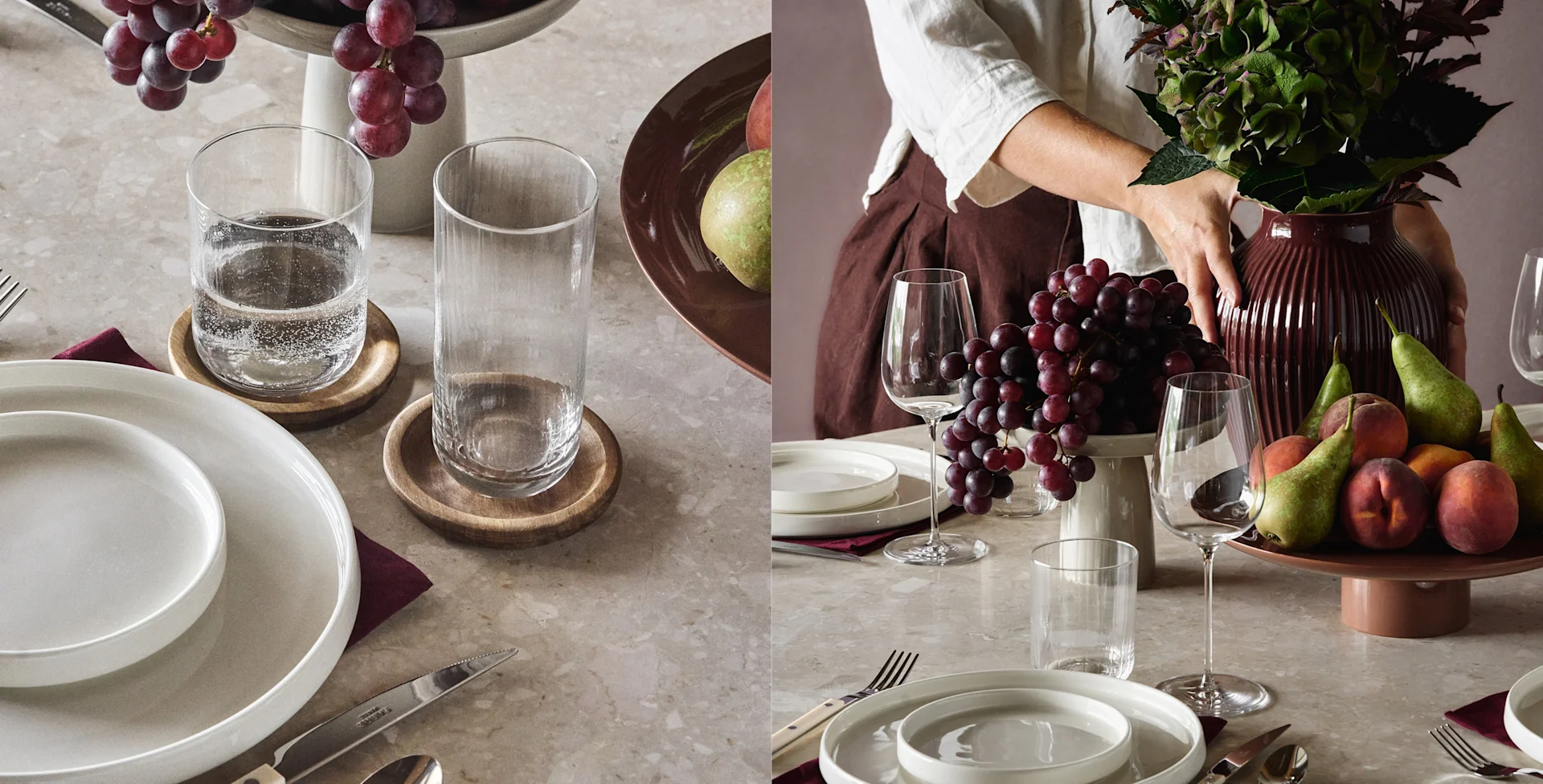 Kombiner gjerne glassene med passende brikker til glass, som både beskytter bordet og duken din i tillegg til å bidra til atmosfæren.