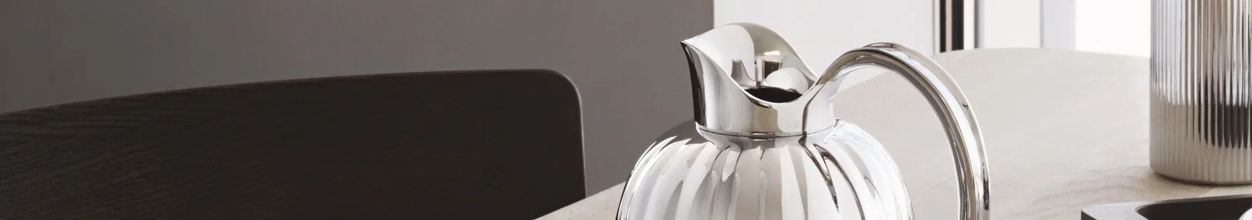 En annen designklassiker er den kjente termokannen Bernadotte fra Georg Jensen, som er designet av Sigvard Bernadotte i 1938. Denne termokannen gir borddekkingen din en eksklusiv og elegant følelse med sin blankpolerte finish i kombinasjon med den riflede overflaten.