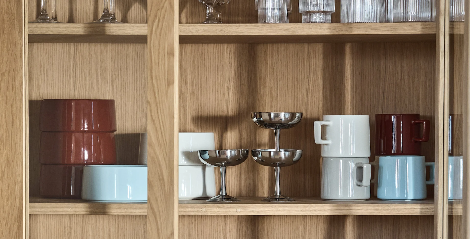Kopper og krus av glass er et stilrent alternativ til keramikk, og viser fram innholder i koppen på en elegant måte. Velg gjerne glasskopper og glasskrus som er isolerte, siden disse ikke mister varme lite fort som ordinære glass, og er også mer komfortable å holde i.